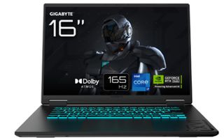 Portatile da gioco Gigabyte con schermo da 16 pollici e tastiera retroilluminata. - Schermo da 16 pollici. - Frequenza di aggiornamento di 165 Hz. - Processore Intel Core i7. - Grafica NVIDIA GeForce RTX. - Suono Dolby Atmos.