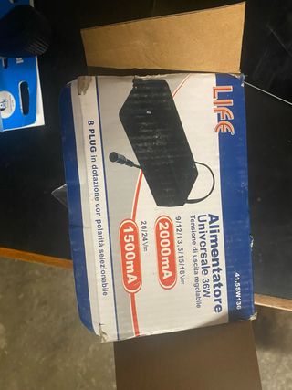 Alimentatore universale LIFE da 36W con tensione di uscita regolabile. mai utilizzato - 8 plug in dotazione con polarità selezionabile. - Uscita 1500mA (20/24V). - Uscita 2000mA (9/12/13,5/15/18V).
