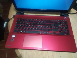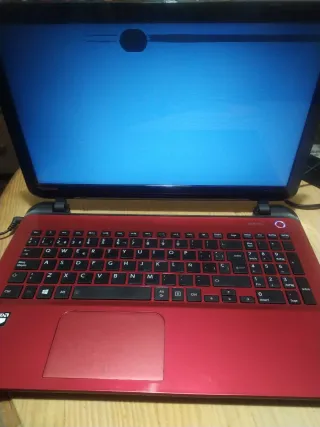 Portatile Toshiba in colore rosso. - Tastiera QWERTY spagnola. - Schermo da 15,6 pollici. - Processore Intel Core i5. Per donazione o riparazione.