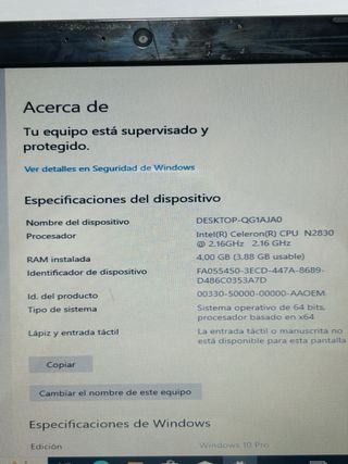 Toshiba Satellite Pro NB10 Celeron + 4Gb + 120Gb in buone condizioni con alcuni segni d'uso. Funziona perfettamente, batteria inclusa. Fornito con caricabatterie. Caratteristiche: Processore Intel Celeron N2830 2.16GHz, 4GB RAM, 120GB SSD, tastiera spagnola, schermo HD da 12,5 pollici, Windows 10 Pro.