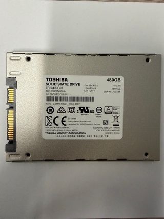 SSD Toshiba TR200 da 480 GB, formato 2,5" con interfaccia SATA III 6 Gb/s. Utilizza memoria 3D BiCS TLC e offre velocità fino a circa 550 MB/s in lettura e 525 MB/s in scrittura, ideale come disco di sistema per PC desktop o notebook per velocizzare avvio e caricamento programmi. L’unità è in buone condizioni estetiche e perfettamente funzionante, smontata da PC per passaggio a capacità superiore.