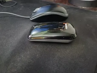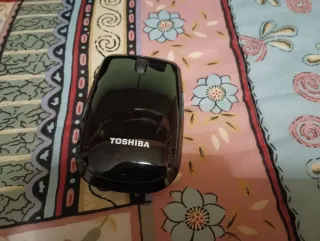 Mouse piatto del marchio Toshiba. Colore nero e argento, nuovo. Utilizza una batteria AAA. Design ergonomico e compatto. Superficie lucida e liscia.