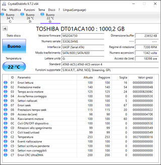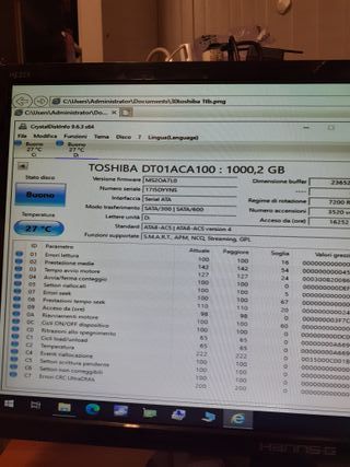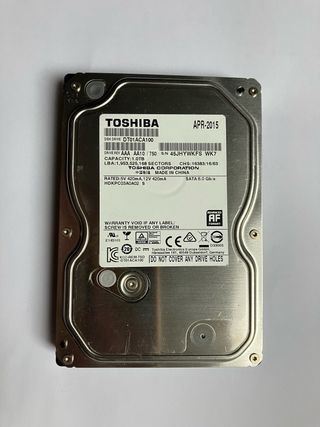 Disco rigido interno Toshiba da 1TB. Utilizzato come raid 1 in uno studio fotografico. - Modello: DT01ACA100 - Capacità: 1.0TB - Interfaccia: SATA 6.0 Gb/s - Prodotto in Cina.