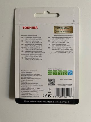 Unità Flash USB da 8GB del marchio Toshiba. Modello U202. Capacità di 8 GB.