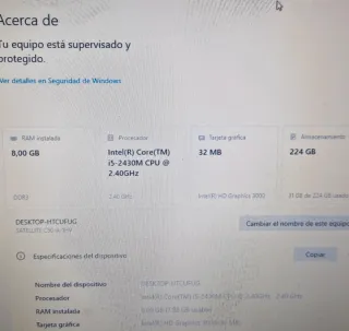 Toshiba Satellite Pro. Processore Intel Core i5. Ideale per le attività quotidiane e professionali. Ingegnere informatico, vendo perfettamente funzionante. Processore i5 di sesta generazione, 8 Gb di RAM, disco rigido SSD ultraveloce. Senza strisce o urti. Schermo da 15", tastierino numerico, doppia uscita VGA e HDMI per funzionare con 3 schermi. Windows 10 a 64 bit con licenza professionale, ultima versione aggiornata, Office 2013 con licenza, visualizzatore di foto e video, compressori, lettore/stampante PDF, tutto appena installato e funzionante La batteria dura un'ora. Puoi provarlo. adattatore di alimentazione Consegna a Valencia o venduto da wallapop.