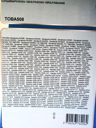 Batteria compatibile PA5278U-1BRS 11,4 V per Toshiba Modelli compatibili Questa batteria è adatta per diversi modelli di laptop Toshiba, tra cui: Portegé X30-D, X30-E, X30-F Scheda tecnica Tecra X40-D, X40-E, X40-F Può anche essere compatibile con le serie Dynabook Portégé X30 e Tecra X40, a condizione che il riferimento e il formato corrispondano --- La batteria soddisfa gli standard dei produttori originali, offre fino a 3-4 ore di durata tipica della batteria, a seconda dell'uso, ed è plug-and-play per laptop compatibili