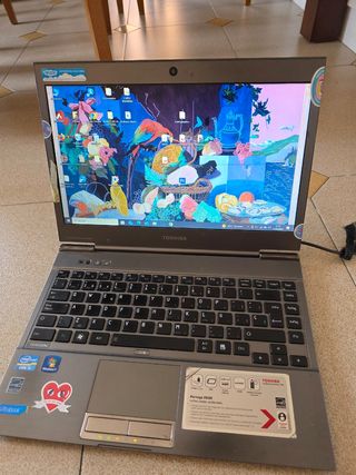 Portatile Toshiba Portege R500 in grigio e argento. - Schermo da 13,3 pollici. - Processore Intel. - Tastiera QWERTY spagnola. - Include Linux installato e funzionante. - Include caricabatterie. - La batteria funziona.