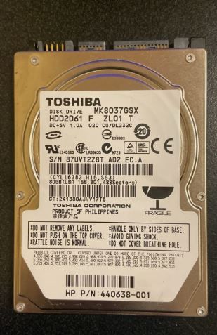 HARD DISK 2,5" TOSHIBA 80GB MK8037GSX usato