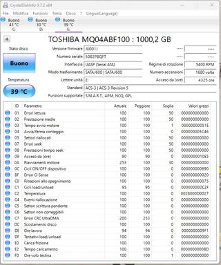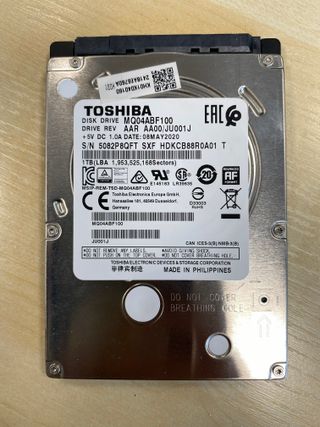 Hard disk interno Toshiba da 1TB, formato 2.5 pollici - Modello: MQ04ABF100 - Capacità: 1TB - Interfaccia: SATA III - Data di produzione: 08MAG2020 - Testato con CrystalDiskInfo (vedi screenshot allegato) ed è in stato di salute "Buono". Non presenta settori danneggiati, errori di lettura o problemi meccanici - Ideale per espansione memoria Laptop o come disco esterno se inserito in un case USB
