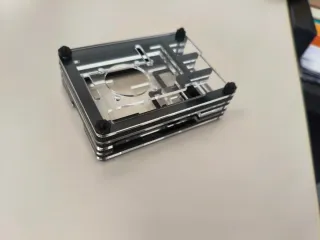 Custodia in acrilico trasparente per Raspberry Pi 3. - Materiale: acrilico. - Design a strati. - Viti di fissaggio incluse. - Ventola - Dissipatori alluminio