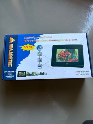 Cornice digitale per foto con display 16:9. - Supporta USB, SD, MMC. - Uscita AV. - Riproduzione MP3.