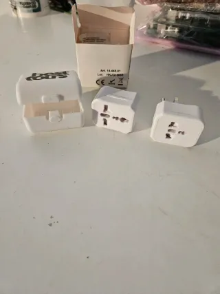 Set di 4 adattatori universali da viaggio. - Design compatto e pratico. - Ideali per diverse prese elettriche internazionali. - Custodia inclusa per un facile trasporto.