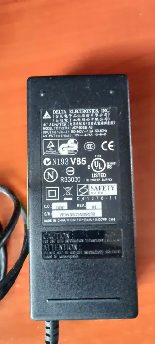 Alimentatore per dispositivi elettronici. - Modello: ADP-90SB AB - Input: 100-240V~1.5A 50-60Hz - Output: 19V 4.74A - Certificazioni: CE, UL, GS, CCC - Fabbricato in Cina