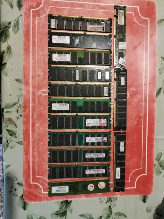 Lotto di moduli RAM Dimm DDR. Non testate, non utilizzate da anni, quindi non posso garantire il funzionamento. - Moduli di memoria per computer. - Diversi tagli e marche. - Ideali per upgrade o sostituzione.