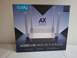 Router Cudy, modello AX3000, wifi 6, 1 porta ethernet 2,5G/POE, 4 porte 1000, porta USB, 4 antenne direzionabili, alimentatore esterno e cavo ethernet compreso nella confezione. La porta da 2,5 è una porta WAN e accetta un'alimentazione PoE da 48 a 57 V, consentendo al router di funzionare normalmente senza alimentatore. Settabile tramite la app o tramite indirizzo IP. Supporta Cudy Mesh ed è in grado di creare una rete mesh con tutti i prodotti Cudy. Vendo come nuovo, nella sua confezione originale, perfettamente funzionante senza graffi nè difetti.