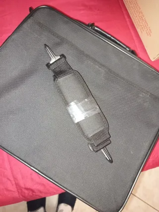 Borsa porta computer in tessuto nero, ideale per proteggere il tuo dispositivo. Per laptop. Usata pochissime volte, da anni chiusa nell'armadio. Con tasca esterna, tasche interne, cinghia. - Tasche interne per organizzazione. - Tracolla regolabile. - Chiusura con cerniera.