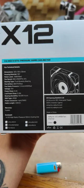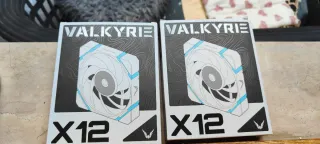 Ventola Valkyrie X12 da 120mm con illuminazione RGB. - Design moderno con pale bianche e dettagli azzurri. - Cornice nera con motivo a linee topografiche. - Logo Valkyrie alato presente sulla cornice. Gaming, pc
