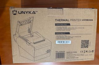 Stampante termica Unykach UK5600, colore nero. - Alimentatore incluso. - Cavo USB incluso. - CD con software incluso.