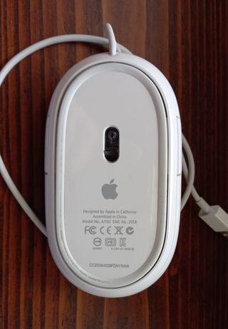 Mouse Apple originale, modello A1152, di colore bianco e con cavo. Trovato in vendita, nuovo, a 99 euro, usati si trovano a 30, più o meno - vendo a 25 euro non trattabili. - Design iconico e compatto. - Connessione cablata.
