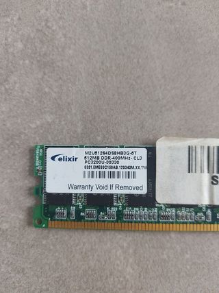 Modulo di memoria RAM per PC desktop. - Capacità: 1GB - Tipo: DDR1 SDRAM - Velocità: PC3200 400MHz - Latenza: CL3 - NonECC Unbuffered - Assemblato in Taiwan