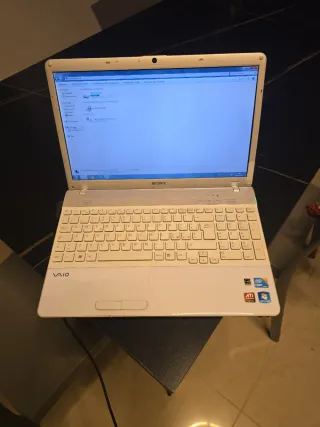 Portatile Sony Vaio di colore bianco. - Tastiera QWERTY completa. - Touchpad integrato. - Webcam integrata. - Logo Sony sul poggiapolsi. Schermo 15,6" 4gb ram hdd 200gb