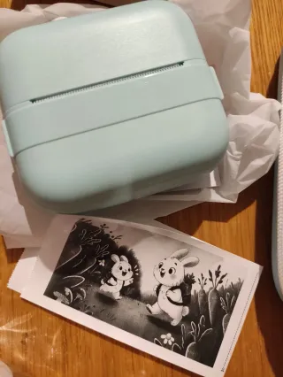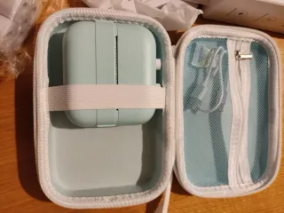 Mini stampante termica portatile, ideale per stampe veloci. - mini printer - custodia protettiva azzurra. - cavetto