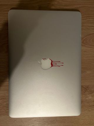 MacBook Apple con un design distintivo. - Colore argento. - Decorazione rossa applicata sul coperchio.