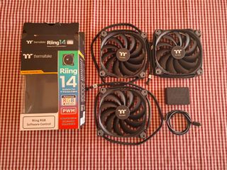 Set di ventole Thermaltake Riing 14 RGB TT Premium Edition in ottimo stato estetico e funzionale. Compreso il controller RGB con cavo usb. Vendo per inutilizzo. - Ventole da 140mm con illuminazione RGB. - Controller incluso per la gestione dell'illuminazione. - Tecnologia PWM per il controllo della velocità delle ventole.