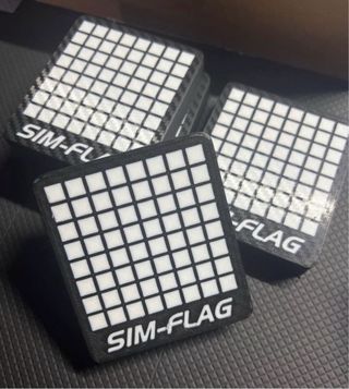 Accessori per simracing SIM-FLAG. - Design a griglia bianca e nera. - Finitura in carbonio sui bordi.