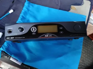 Trasmettitore per sistema monitor in-ear UHF. - Modello MIM 20T. - Connessione per cuffie (Phones). - Display LCD. - Pulsante di impostazione (Set). - Pulsante di accensione/spegnimento.