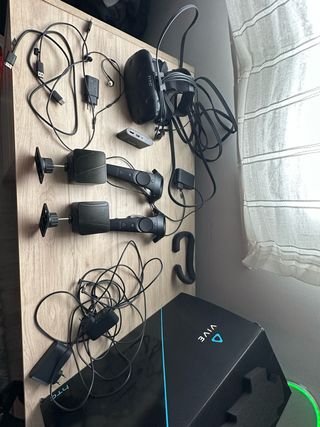 Vendo il mio HTC Vive in perfetto stato di funzionamento. Si vende con tutto il necessario per iniziare a giocare fin dal primo momento, senza bisogno di acquistare nulla di aggiuntivo. ✅ Contenuto incluso: • Casco HTC Vive con cinghie e schiuma facciale • 2 controller originali Vive (wand) • 2 Base Stations (stazioni di tracciamento) con supporti di montaggio • Link Box HTC (scatola di connessione HDMI + USB 3.0 + audio) • Cavo del casco (HDMI + USB) • 2 adattatori di corrente per le Base Stations (spinotto EU) • Caricatore da parete con cavo USB-C per controller • Cuffie in-ear originali HTC • Scatola originale HTC Vive