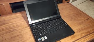 In perfette condizioni, il caricabatterie non è originale ma funziona perfettamente. Specifiche tecniche: Schermo da 10,1". Intel Atom N280, 1,6 GHz 1 GB di memoria Ram Disco rigido TOSHIBA MK1655GSX da 160 GB Scheda video Intel GMA 950 Schermo LCD LG Philips da 10,1" Rete Fast Ethernet Realtek RTL8139/810x Wi-Fi Atheros AR9285 802.11b/g/n Suono Realtek ALC272 Licenza originale con chiave Windows XP Tastiera e touchpad spagnoli Webcam Lettore di schede di memoria Uscita video VGA Connettore Ethernet Connettori per microfono e cuffie 3 porte USB