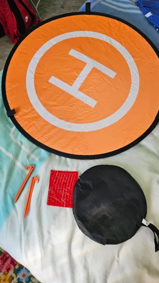 🚁 Pista di atterraggio per droni. Vendo pista/eliporto portatile per droni, ideale per decolli e atterraggi sicuri su qualsiasi terreno (terra, erba, sabbia, ghiaia, ecc.). Evita che la polvere entri nei motori e protegge la fotocamera all'atterraggio. Materiale resistente e impermeabile. Pieghevole e facile da trasportare (include custodia). Colori visibili per una migliore orientazione dall'aria. Compatibile con DJI, Autel, FPV e qualsiasi drone.
