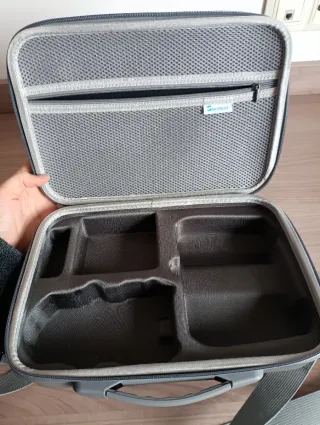 Borsa protettiva per droni e accessori. Compatibile con droni DJI come Mini 2, 3 o 4. Mai utilizzata. - Interno con scomparti sagomati. - Maglia interna con cerniera per cavi e accessori. - Maniglia di trasporto resistente.