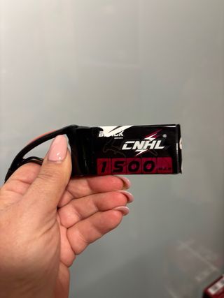 Batteria al litio per droni del marchio CNHL. Capacità di 1500mAh. Colore nero con dettagli in rosso. Connettore incluso.