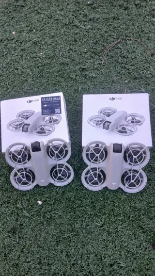 In vendita due droni DJI Neo in colori grigio e bianco. Adatti per riparazione o per parti di ricambio