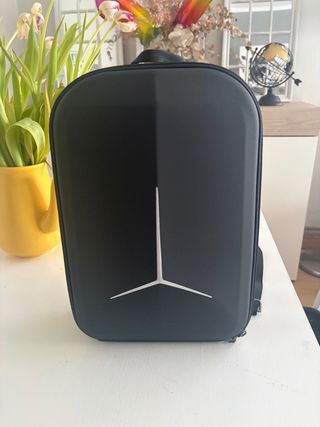 Zaino progettato per trasportare droni e accessori. La sua forma rigida protegge il contenuto. Design moderno e funzionale. Scomparti interni per l'organizzazione.