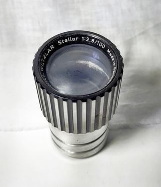 Obbiettivo fotografico VARIO. - Modello Aplanat. - Lunghezza focale 135 mm. - Apertura f/7,2. - Indicazioni di velocità: 25, 50, 100. - Posizioni B (Bulb) e F (posa lunga).