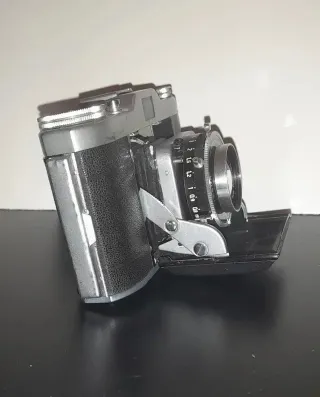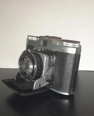 Macchina fotografica vintage Balda con obiettivo Zeiss. - Corpo macchina in metallo argentato. - Rivestimento in similpelle nera.