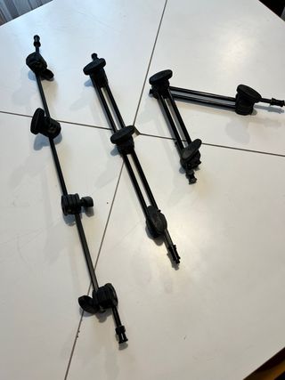 Set di bracci regolabili per luci da fotografia. Sono ideali per posizionare le tue luci in modo flessibile. - Materiale: metallo nero. - Design articolato per diverse angolazioni. - Morsetti inclusi per fissaggio.