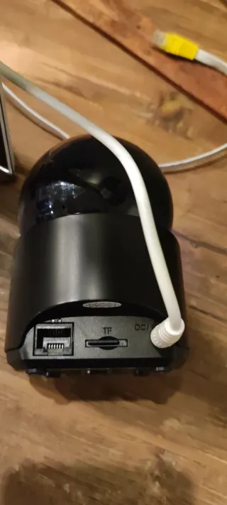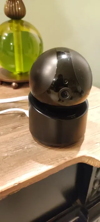 Telecamera di sorveglianza con connettività WiFi. - Design compatto e moderno. - Ideale per monitorare ambienti interni. - Facile da installare e configurare. Nuova, aperta e accesa solo per testarla.. Sì connette al Wi-Fi e la si può controllare da remoto con l'applicazione Cam Hi. Invia notifiche in caso di movimenti e si può registrare tutto su schedina di memoria. Presenti adattatore, cavo usb, staffa per fissaggio a muro