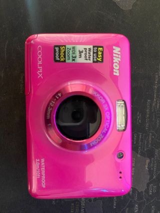 Fotocamera digitale Nikon Coolpix di colore rosa, compatta e facile da usare. - Zoom ottico 3x. - Impermeabile fino a 3 metri. - Resistente agli urti. Nikon Coolpix S30 nuova mai usata