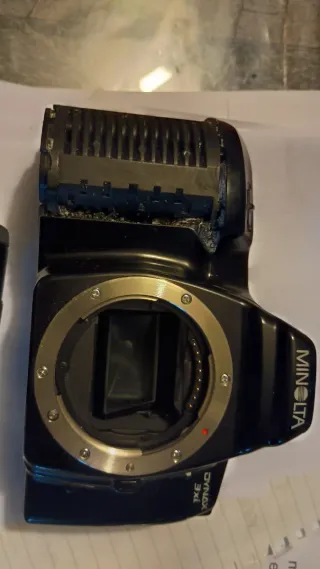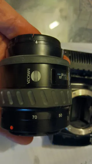 Obiettivo e macchina Minolta Reflex Analogca in colore nero. Ha solo l impugnatura da sistemare. Perfetto utilizzo. - Marchio Minolta - Colore nero
