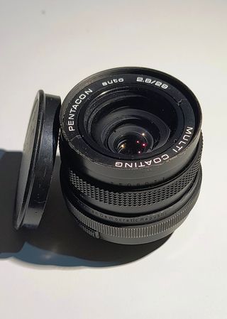 Obiettivo Pentacon MC auto 29mm F2.8 con attacco M42. - Obiettivo con rivestimento multistrato (MC). - Lunghezza focale di 29mm. - Apertura massima F2.8. - Attacco M42. Pentacon 29mm f.2.8 in buone condizioni, lenti limpide senza graffi, no funghi. Lamelle diaframma pulite e scattanti. Messa a fuoco fluida. Montaggio M42 a vite. Obiettivo famoso per il suo bokeh cremoso e a bolle di sapone, e per la minima distanza di messa a fuoco molto ravvicinata. Completo dei tappi e scatola originale. Regalo filtro protettivo UV Tamron