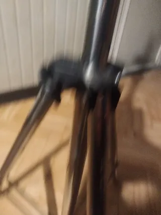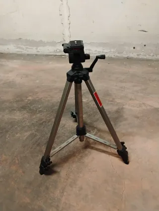 Robusto treppiede in metallo, ideale per fotografia e videografia. - Struttura in metallo lucido. - Gambe regolabili in altezza. - Supporto universale per fotocamera.tutto come da foto è sta fatta una riparazione ad una asta parte sotto con una vite, più c'è un crepetto sulla pastica nella parte centrale