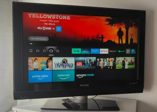 Televisore Philips da 32 pollici in colore nero, funziona perfettamente. - Schermo HD da 32 pollici. - Con connessione HDMI. - Con telecomando universale. Ha un piccolo difetto sullo schermo, come si vede nell'ultima foto, ma si nota a malapena quando si guarda la TV. Il cavo della spina è stato allungato e ha circa 2 m o più. La teniamo in camera con un Firestick e funziona molto bene, quasi non la usiamo, per questo la vendiamo. (Solo la TV, non viene con il Firestick)