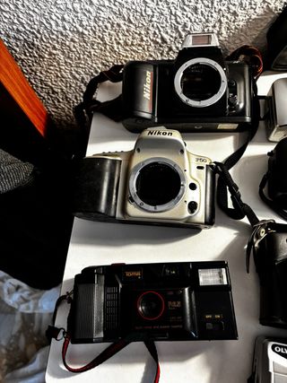 In vendita tre fotocamere, inclusi modelli Nikon e Charman. Ideale per collezionisti o appassionati di fotografia analogica. - Fotocamera Nikon AF230. - Fotocamera Charman. - Fotocamera Hommer Espia Spagna.