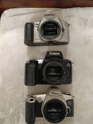 Svendo Fotocamere Reflex Analogiche a pellicola Canon EOS 500N ,1000Fn e 3000V solo corpo macchina perfettamente funzionanti tutte senza obbiettivo come da foto il prezzo dell' annuncio è riferito ad 1 sola macchina se prese tutte lascio tutto a 40€