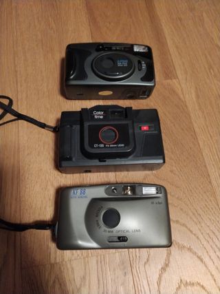 Vendo due vecchie fotocamere per pellicola. Sono in buone condizioni e sono ideali per collezionisti o amanti della fotografia analogica. - Funzionano con pellicole da 35 mm. - Sono di colore nero. - Hanno messa a fuoco fissa. - Includono una cinghia per il collo.