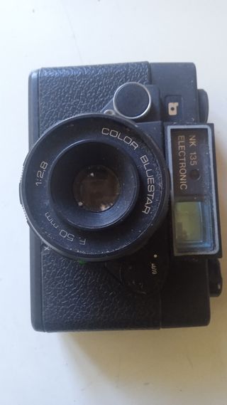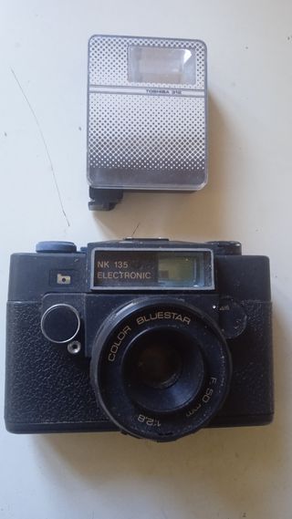 Vendo questa fotocamera NK 135 Electronic Bluestar, in buone condizioni estetiche. Include anche un flash Toshiba 315. È degli anni 80 e va a rullino. Non è digitale. - Modello: NK 135 Electronic Bluestar - Ottica Bluestar - Flash incluso: Toshiba 315 - Colore nero